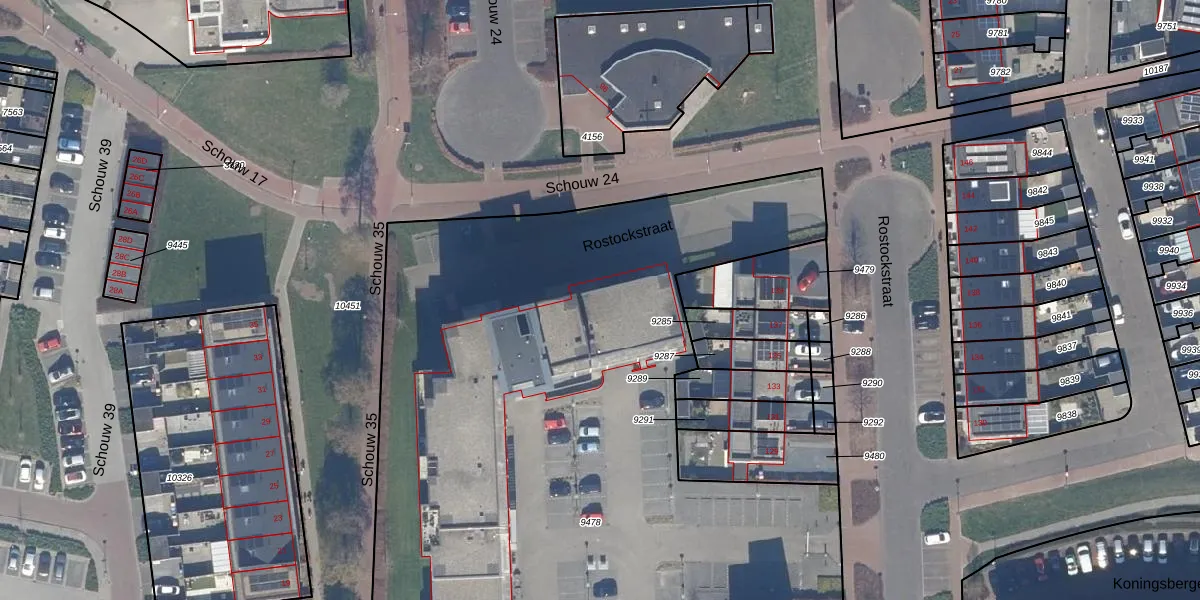 Het perceel waarop Rostockstraat 105 staat heeft een oppervlakte van 7630 m². Dit is een zeer groot perceel. De perceeloppervlakte wordt geregistreerd door het Kadaster. Gedetailleerde informatie over de maten van dit perceel kunt u vinden in het rapport Kadastrale kaart met maatvoering van Rostockstraat 105.