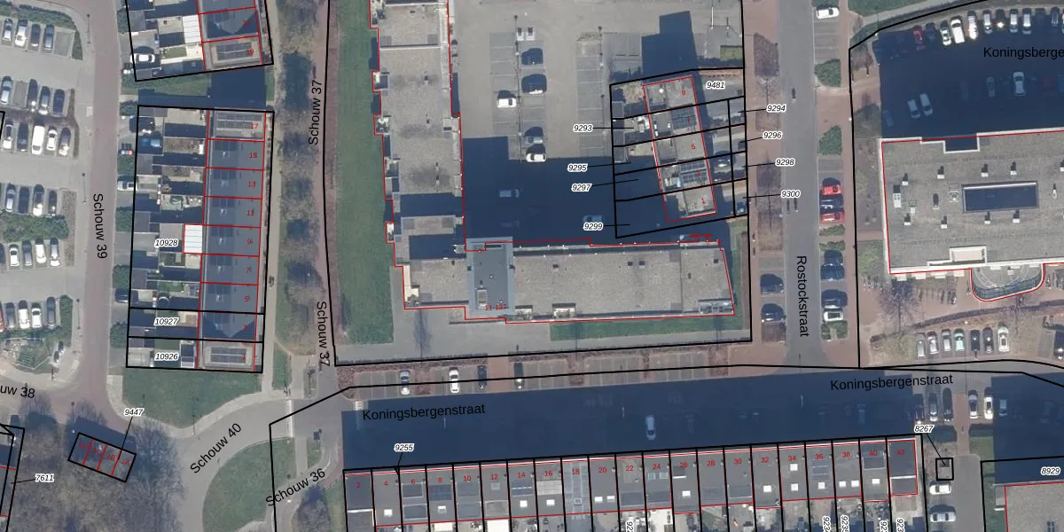 Het perceel waarop Rostockstraat 17 staat heeft een oppervlakte van 7630 m². Dit is een zeer groot perceel. De perceeloppervlakte wordt geregistreerd door het Kadaster. Gedetailleerde informatie over de maten van dit perceel kunt u vinden in het rapport Kadastrale kaart met maatvoering van Rostockstraat 17.