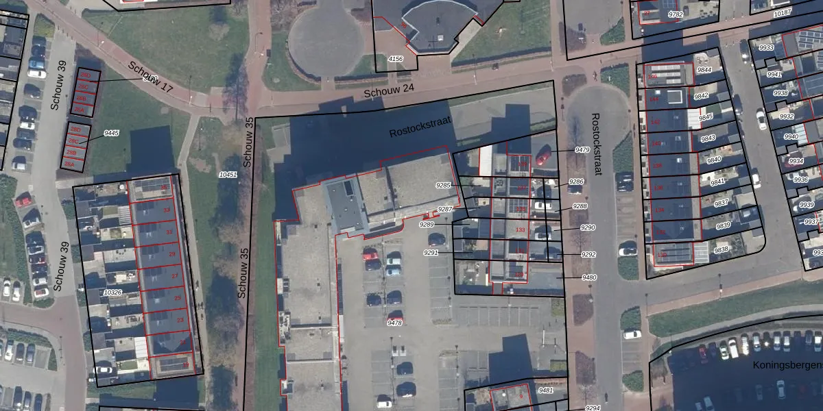Het perceel waarop Rostockstraat 37 staat heeft een oppervlakte van 7630 m². Dit is een zeer groot perceel. De perceeloppervlakte wordt geregistreerd door het Kadaster. Gedetailleerde informatie over de maten van dit perceel kunt u vinden in het rapport Kadastrale kaart met maatvoering van Rostockstraat 37.