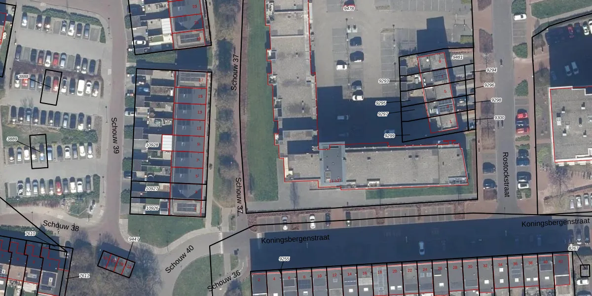 Rostockstraat 53 is gelegen op kadastraal perceel LLS00M9478. Deze kadastrale aanduiding is uniek en wordt gebruikt door het Kadaster om eigendomsrechten en andere zakelijke rechten vast te leggen. Het perceel maakt onderdeel uit van de kadastrale gemeente Lelystad.