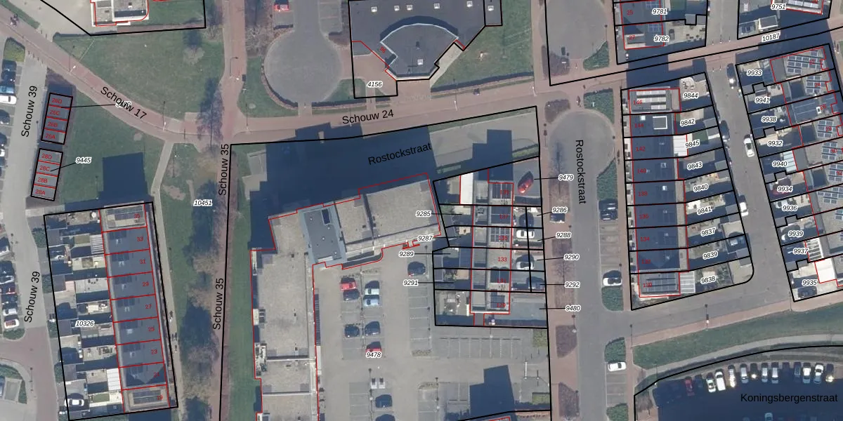 Rostockstraat 77 is gelegen op kadastraal perceel LLS00M9478. Deze kadastrale aanduiding is uniek en wordt gebruikt door het Kadaster om eigendomsrechten en andere zakelijke rechten vast te leggen. Het perceel maakt onderdeel uit van de kadastrale gemeente Lelystad.
