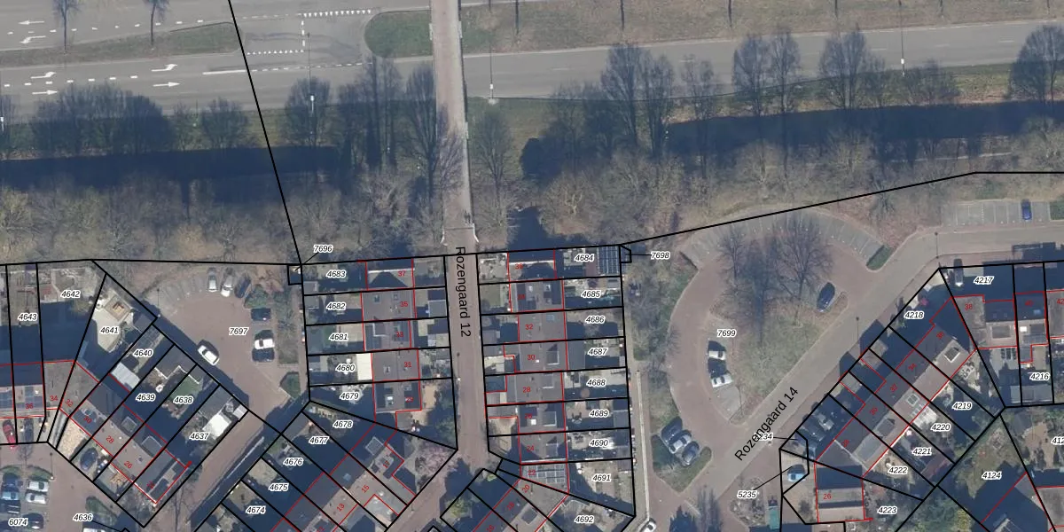 Rozengaard 12 36 is gelegen op kadastraal perceel LLS00K4684. Deze kadastrale aanduiding is uniek en wordt gebruikt door het Kadaster om eigendomsrechten en andere zakelijke rechten vast te leggen. Het perceel maakt onderdeel uit van de kadastrale gemeente Lelystad.