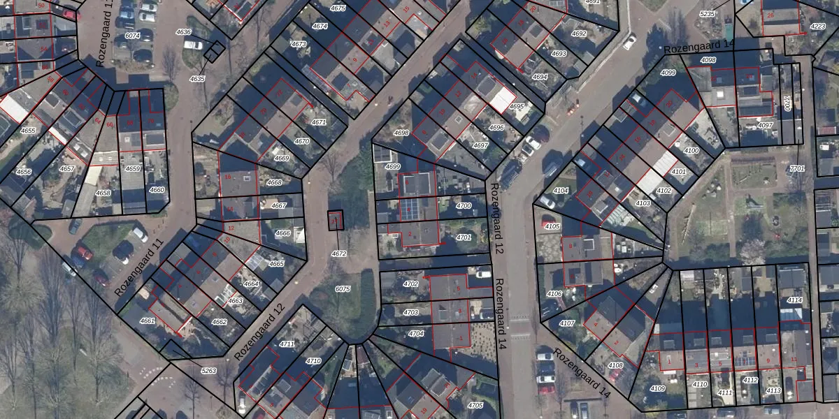 Gebruik de zoekbalk of klik op een perceel voor informatie over de adressen binnen dit perceel.