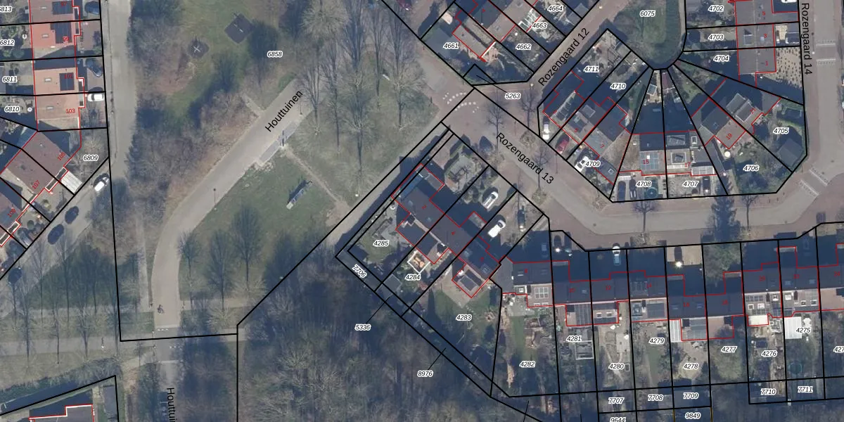 Het perceel waarop Rozengaard 13 2 staat heeft een oppervlakte van 418 m². Dit is een groot perceel. De perceeloppervlakte wordt geregistreerd door het Kadaster. Gedetailleerde informatie over de maten van dit perceel kunt u vinden in het rapport Kadastrale kaart met maatvoering van Rozengaard 13 2.