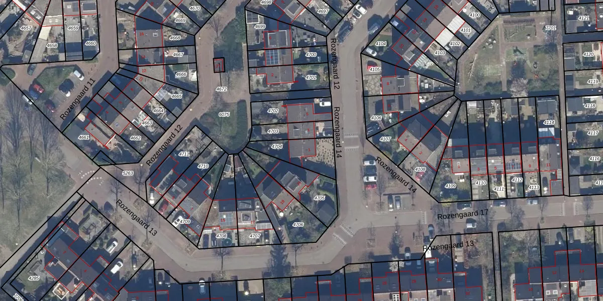 Rozengaard 14 1 is gelegen op kadastraal perceel LLS00K4704. Deze kadastrale aanduiding is uniek en wordt gebruikt door het Kadaster om eigendomsrechten en andere zakelijke rechten vast te leggen. Het perceel maakt onderdeel uit van de kadastrale gemeente Lelystad.