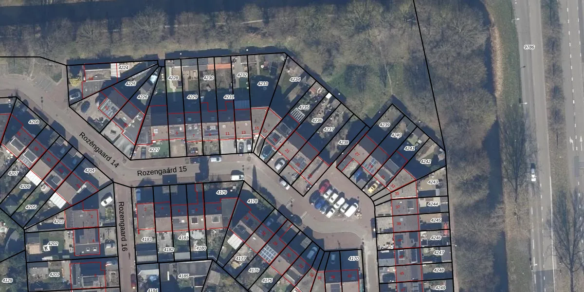 Rozengaard 15 21 is gelegen op kadastraal perceel LLS00K4236. Deze kadastrale aanduiding is uniek en wordt gebruikt door het Kadaster om eigendomsrechten en andere zakelijke rechten vast te leggen. Het perceel maakt onderdeel uit van de kadastrale gemeente Lelystad.