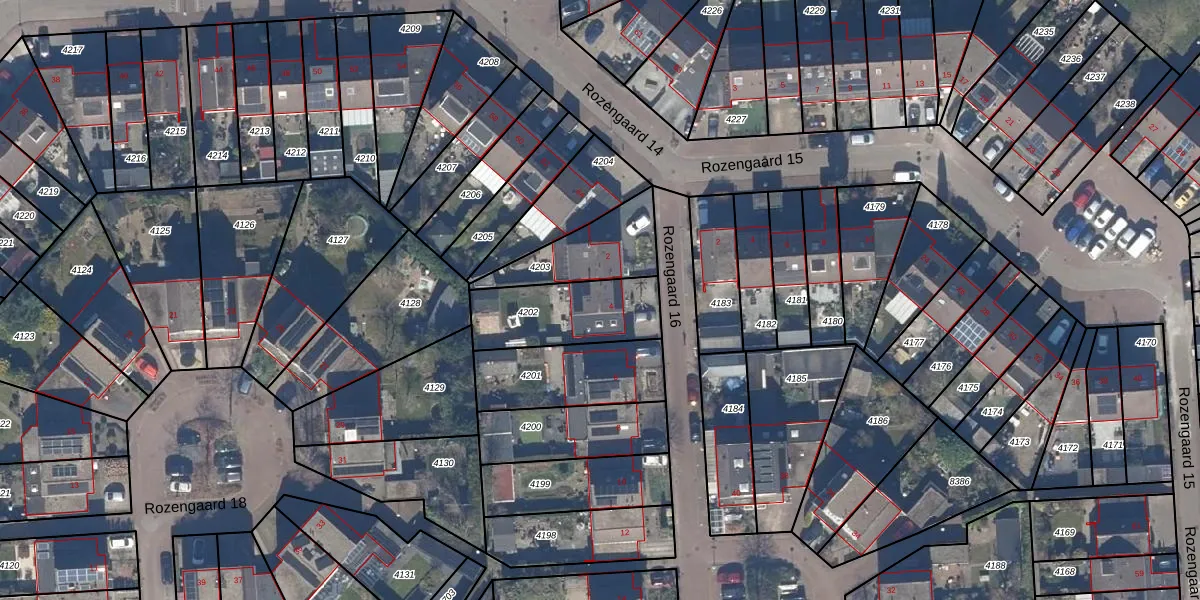 Gebruik de zoekbalk of klik op een perceel voor informatie over de adressen binnen dit perceel.