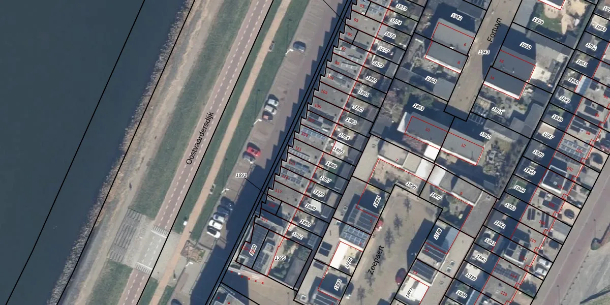 Gebruik de zoekbalk of klik op een perceel voor informatie over de adressen binnen dit perceel.