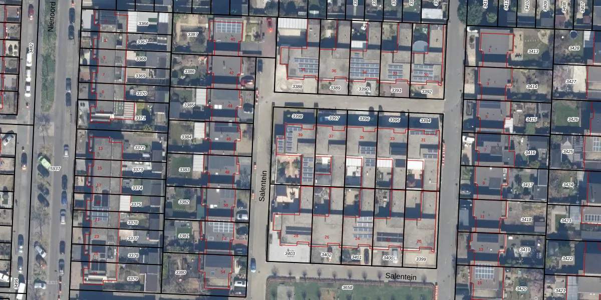 Het perceel waarop Salentein 39 staat heeft een oppervlakte van 375 m². Dit is een groot perceel. De perceeloppervlakte wordt geregistreerd door het Kadaster. Gedetailleerde informatie over de maten van dit perceel kunt u vinden in het rapport Kadastrale kaart met maatvoering van Salentein 39.