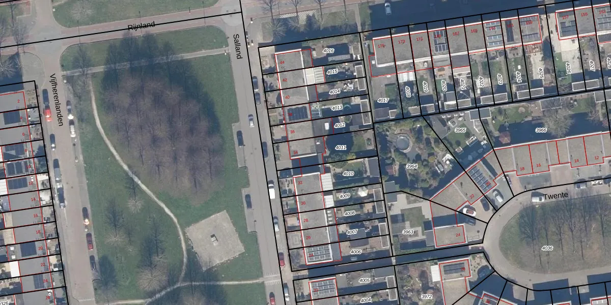 Gebruik de zoekbalk of klik op een perceel voor informatie over de adressen binnen dit perceel.