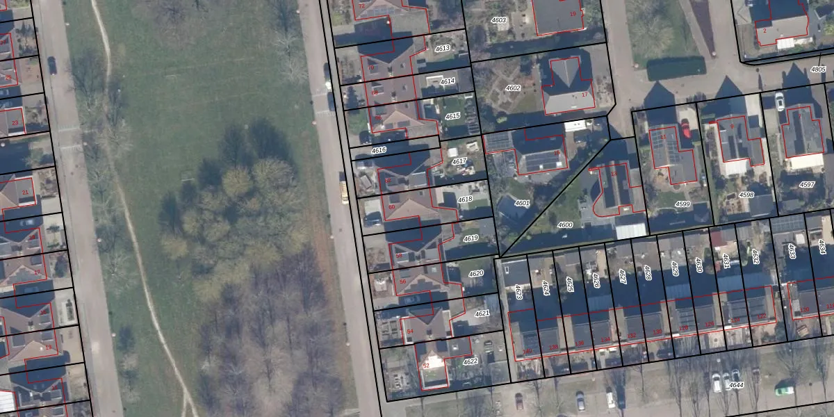 Het adres is gelegen op perceel 4618 in de sectie O en de kadastrale gemeente Lelystad. De kadastrale aanduiding is aldus LLS00-O-4618. Het perceel is 290 m² groot. Dat is kleiner dan de gemiddelde perceeloppervlakte in Lelystad, dat op 2,1 ha ligt. Het kleinste perceel in de kadastrale gemeente is 0 m² groot. De grootste perceeloppervlakte is 78,50 km². Dit is het enige adres dat aanwezig is op het perceel. De huidige grenzen van het perceel zijn digitaal in de Basisregistratie Kadaster (BRK) geregistreerd op 20-12-2000.