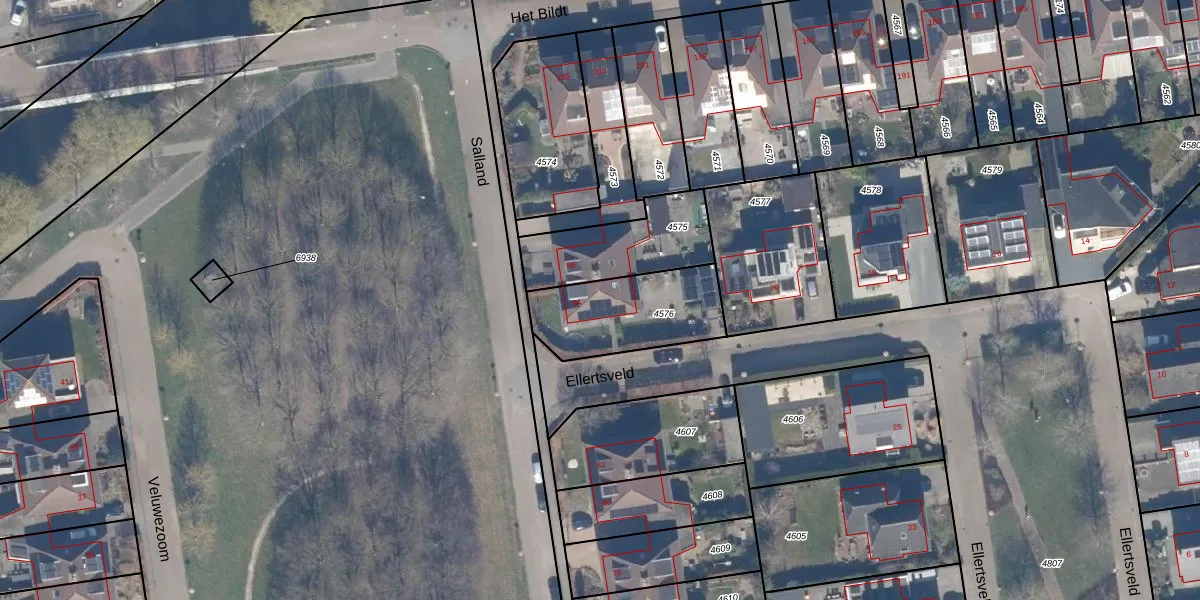 Het perceel waarop Salland 84 staat heeft een oppervlakte van 383 m². Dit is een groot perceel. De perceeloppervlakte wordt geregistreerd door het Kadaster. Gedetailleerde informatie over de maten van dit perceel kunt u vinden in het rapport Kadastrale kaart met maatvoering van Salland 84.