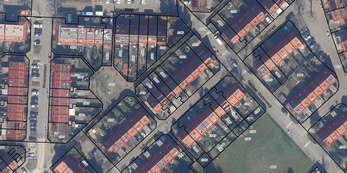 Gebruik de zoekbalk of klik op een perceel voor informatie over de adressen binnen dit perceel.