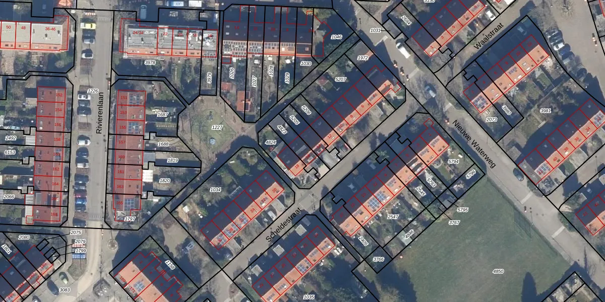 Gebruik de zoekbalk of klik op een perceel voor informatie over de adressen binnen dit perceel.