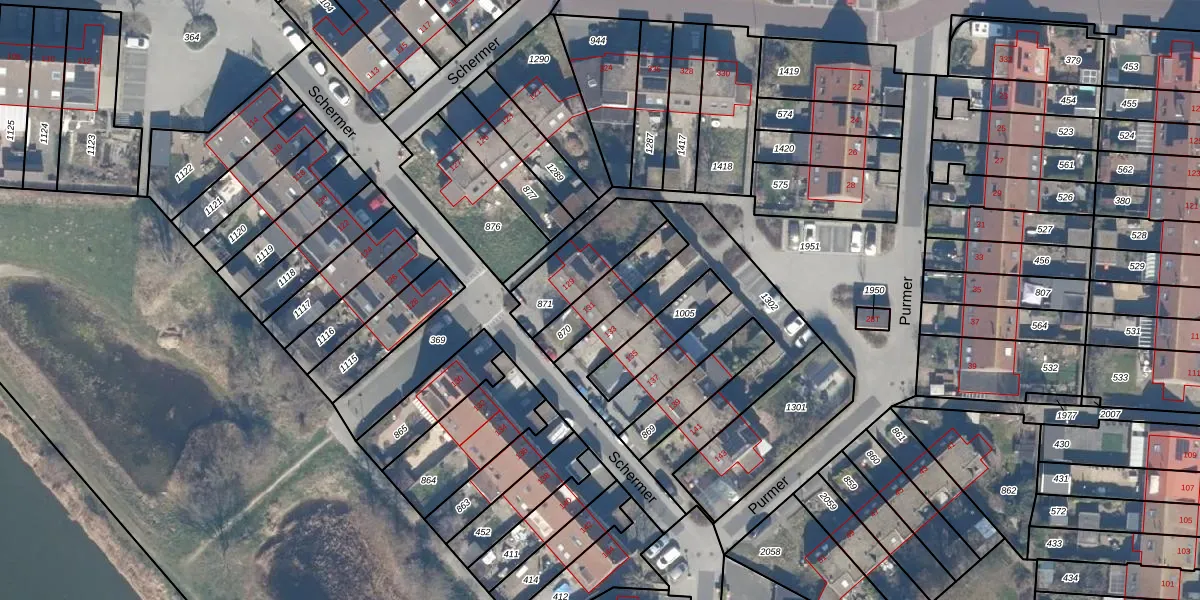 Gebruik de zoekbalk of klik op een perceel voor informatie over de adressen binnen dit perceel.