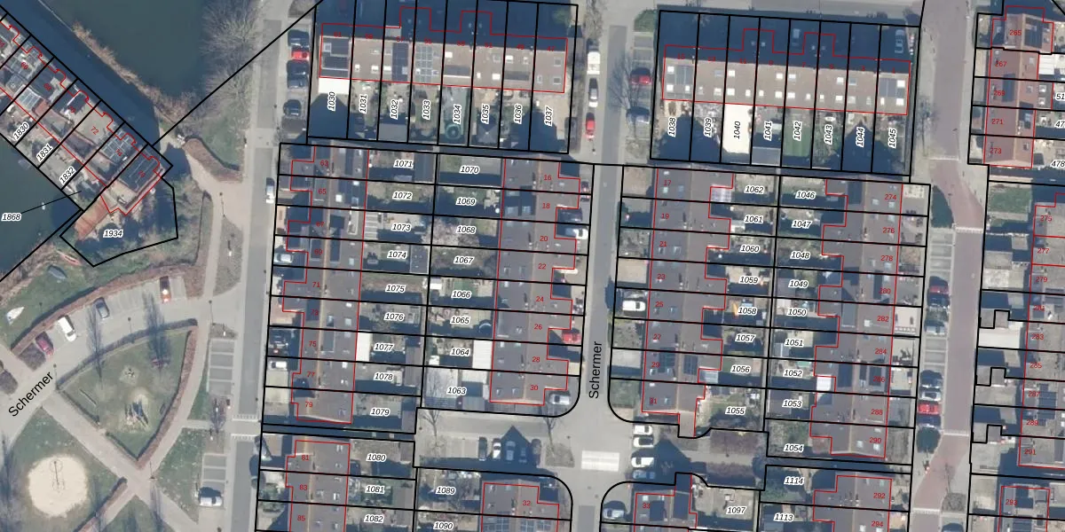 Het perceel waarop Schermer 22 staat heeft een oppervlakte van 168 m². Dit is een middelgroot perceel. De perceeloppervlakte wordt geregistreerd door het Kadaster. Gedetailleerde informatie over de maten van dit perceel kunt u vinden in het rapport Kadastrale kaart met maatvoering van Schermer 22.