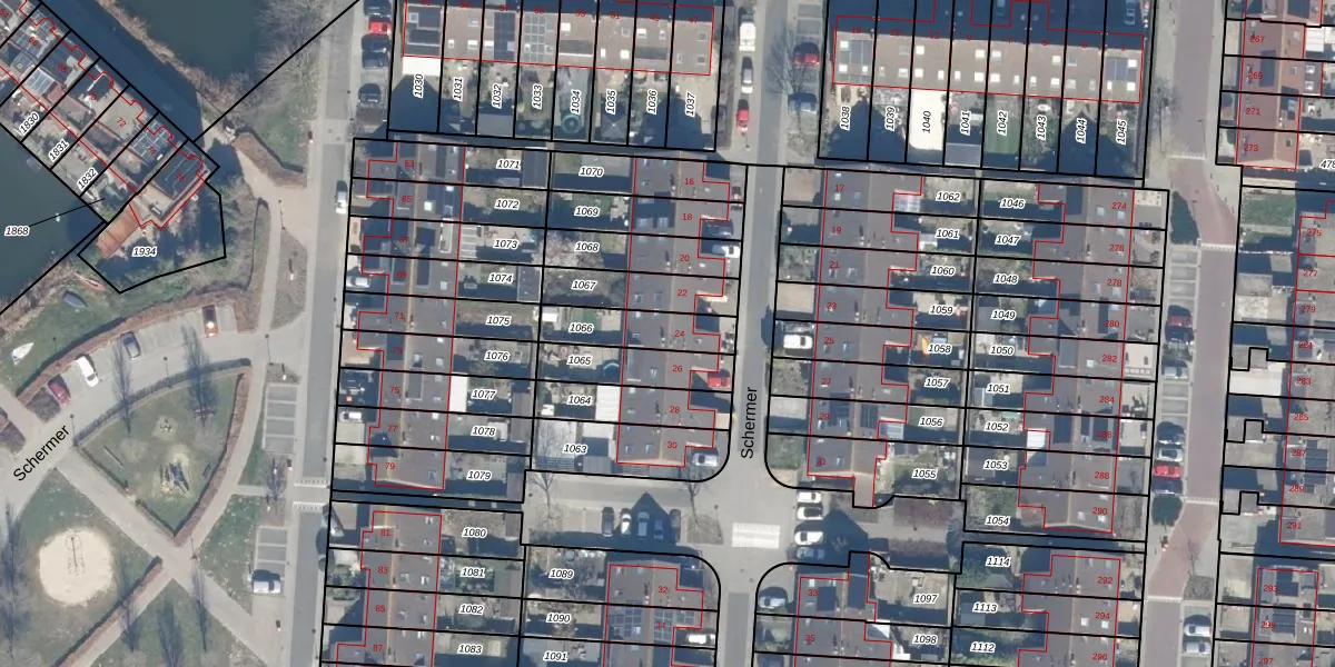 Het perceel waarop Schermer 24 staat heeft een oppervlakte van 168 m². Dit is een middelgroot perceel. De perceeloppervlakte wordt geregistreerd door het Kadaster. Gedetailleerde informatie over de maten van dit perceel kunt u vinden in het rapport Kadastrale kaart met maatvoering van Schermer 24.