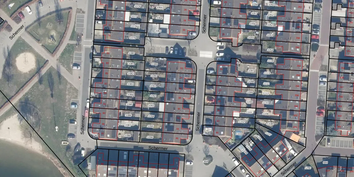 Het perceel waarop Schermer 36 staat heeft een oppervlakte van 168 m². Dit is een middelgroot perceel. De perceeloppervlakte wordt geregistreerd door het Kadaster. Gedetailleerde informatie over de maten van dit perceel kunt u vinden in het rapport Kadastrale kaart met maatvoering van Schermer 36.