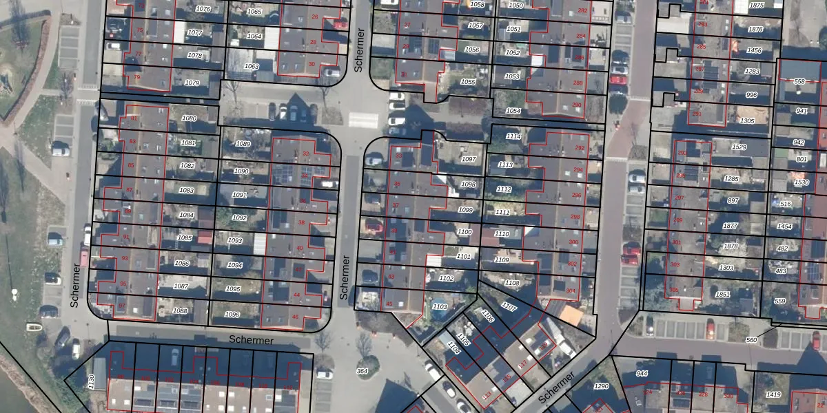 Het perceel waarop Schermer 37 staat heeft een oppervlakte van 168 m². Dit is een middelgroot perceel. De perceeloppervlakte wordt geregistreerd door het Kadaster. Gedetailleerde informatie over de maten van dit perceel kunt u vinden in het rapport Kadastrale kaart met maatvoering van Schermer 37.