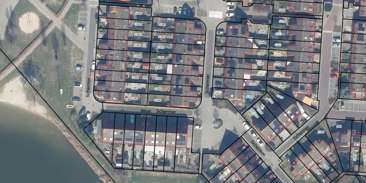 Het perceel waarop Schermer 44 staat heeft een oppervlakte van 168 m². Dit is een middelgroot perceel. De perceeloppervlakte wordt geregistreerd door het Kadaster. Gedetailleerde informatie over de maten van dit perceel kunt u vinden in het rapport Kadastrale kaart met maatvoering van Schermer 44.