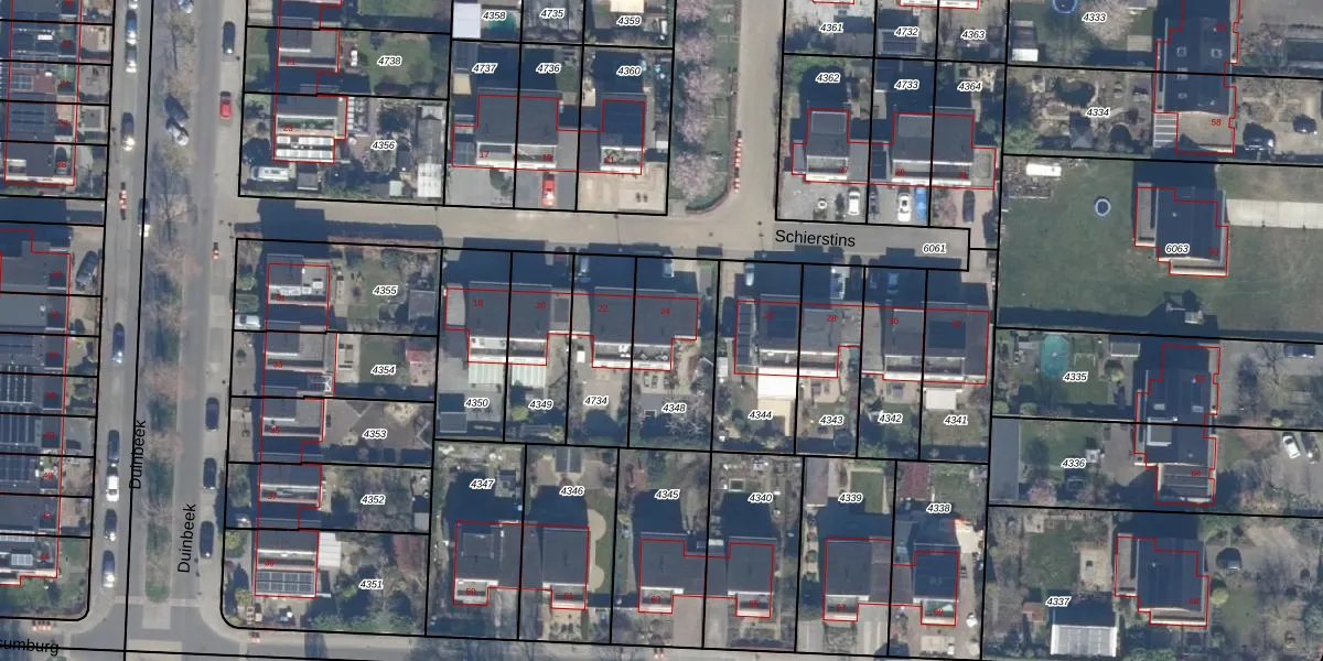 Gebruik de zoekbalk of klik op een perceel voor informatie over de adressen binnen dit perceel.