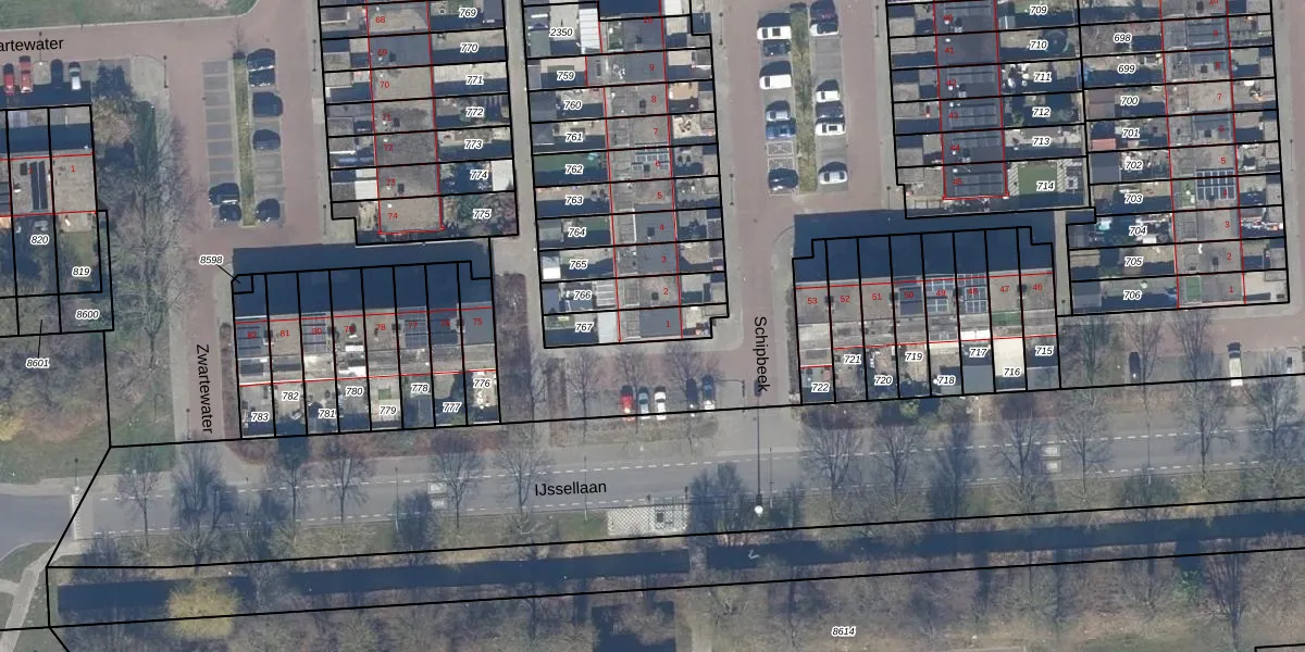 Gebruik de zoekbalk of klik op een perceel voor informatie over de adressen binnen dit perceel.