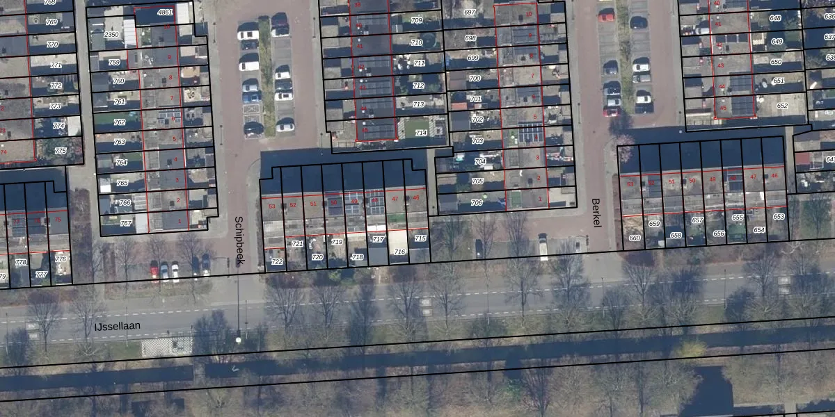 Gebruik de zoekbalk of klik op een perceel voor informatie over de adressen binnen dit perceel.