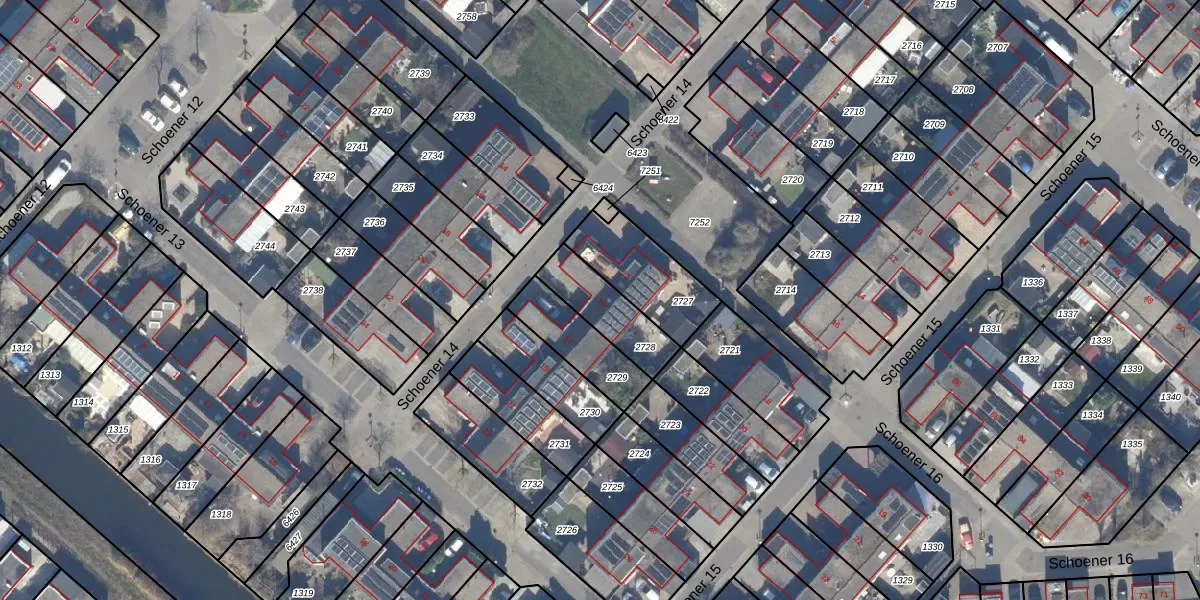Het perceel waarop Schoener 14 15 staat heeft een oppervlakte van 189 m². Dit is een middelgroot perceel. De perceeloppervlakte wordt geregistreerd door het Kadaster. Gedetailleerde informatie over de maten van dit perceel kunt u vinden in het rapport Kadastrale kaart met maatvoering van Schoener 14 15.