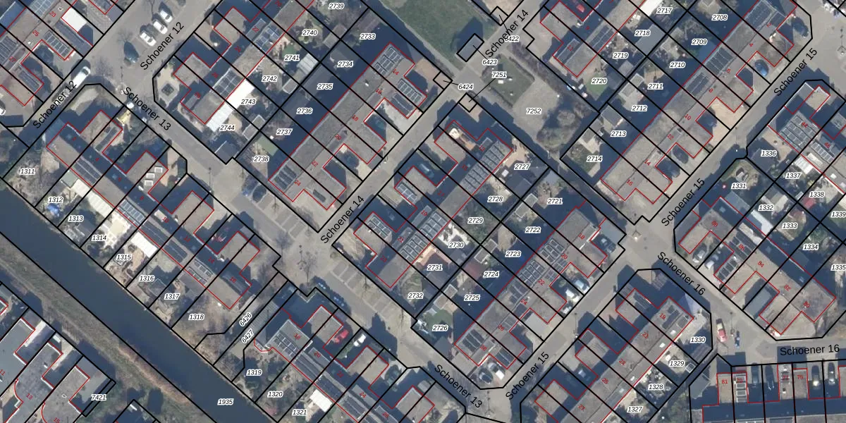 Gebruik de zoekbalk of klik op een perceel voor informatie over de adressen binnen dit perceel.