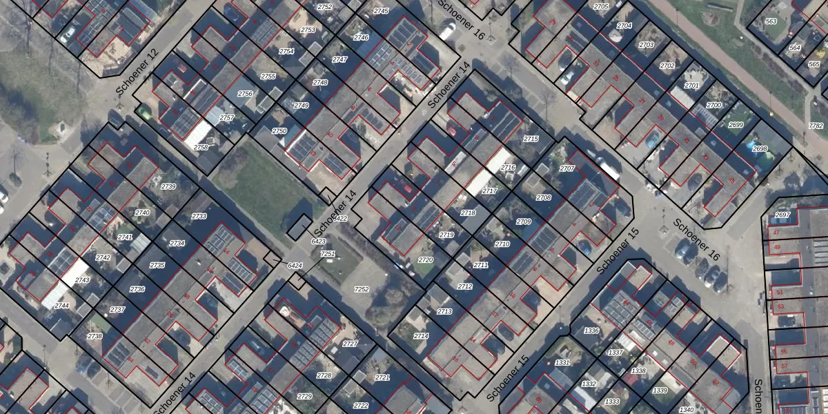 Het perceel waarop Schoener 14 9 staat heeft een oppervlakte van 189 m². Dit is een middelgroot perceel. De perceeloppervlakte wordt geregistreerd door het Kadaster. Gedetailleerde informatie over de maten van dit perceel kunt u vinden in het rapport Kadastrale kaart met maatvoering van Schoener 14 9.