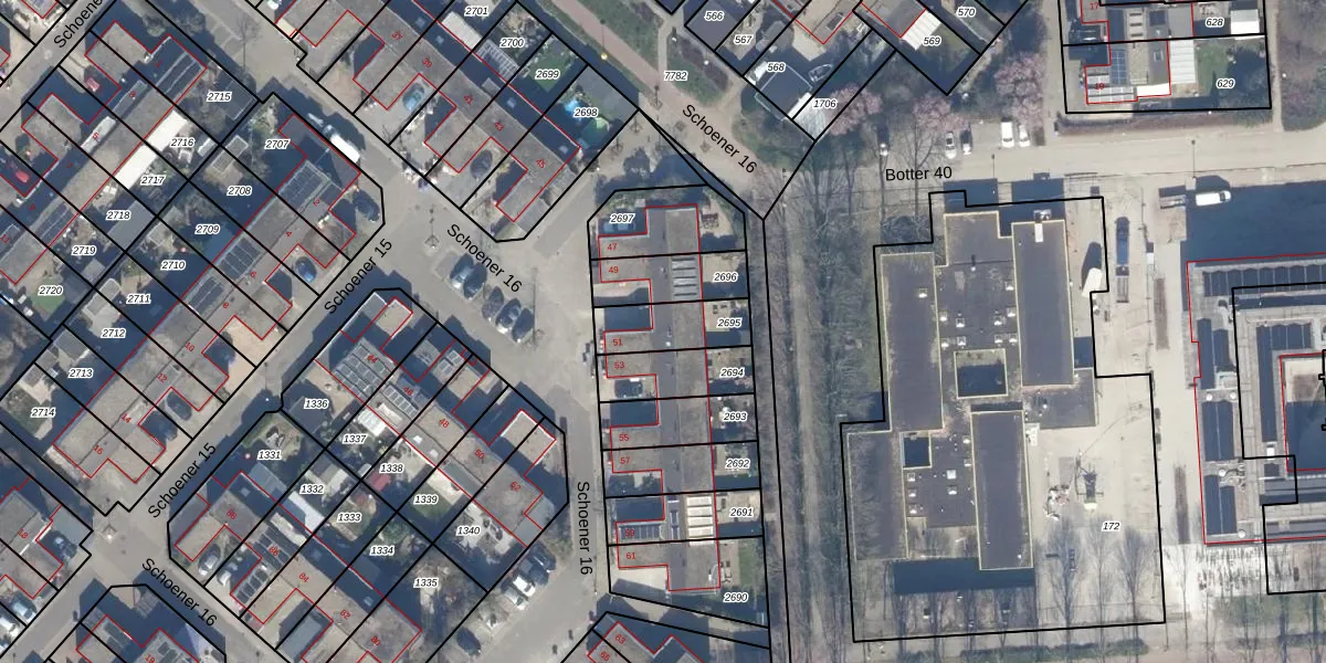 Gebruik de zoekbalk of klik op een perceel voor informatie over de adressen binnen dit perceel.