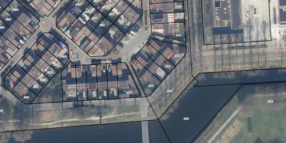 Schoener 16 69 is gelegen op kadastraal perceel LLS00O2686. Deze kadastrale aanduiding is uniek en wordt gebruikt door het Kadaster om eigendomsrechten en andere zakelijke rechten vast te leggen. Het perceel maakt onderdeel uit van de kadastrale gemeente Lelystad.