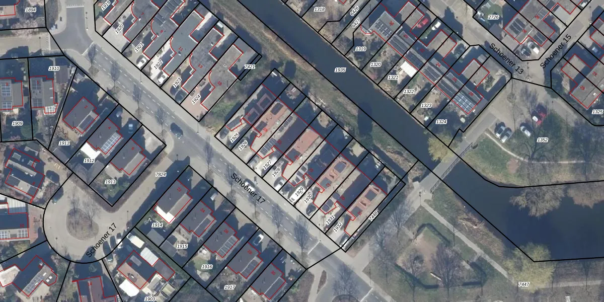 Het perceel waarop Schoener 17 23 staat heeft een oppervlakte van 210 m². Dit is een middelgroot perceel. De perceeloppervlakte wordt geregistreerd door het Kadaster. Gedetailleerde informatie over de maten van dit perceel kunt u vinden in het rapport Kadastrale kaart met maatvoering van Schoener 17 23.