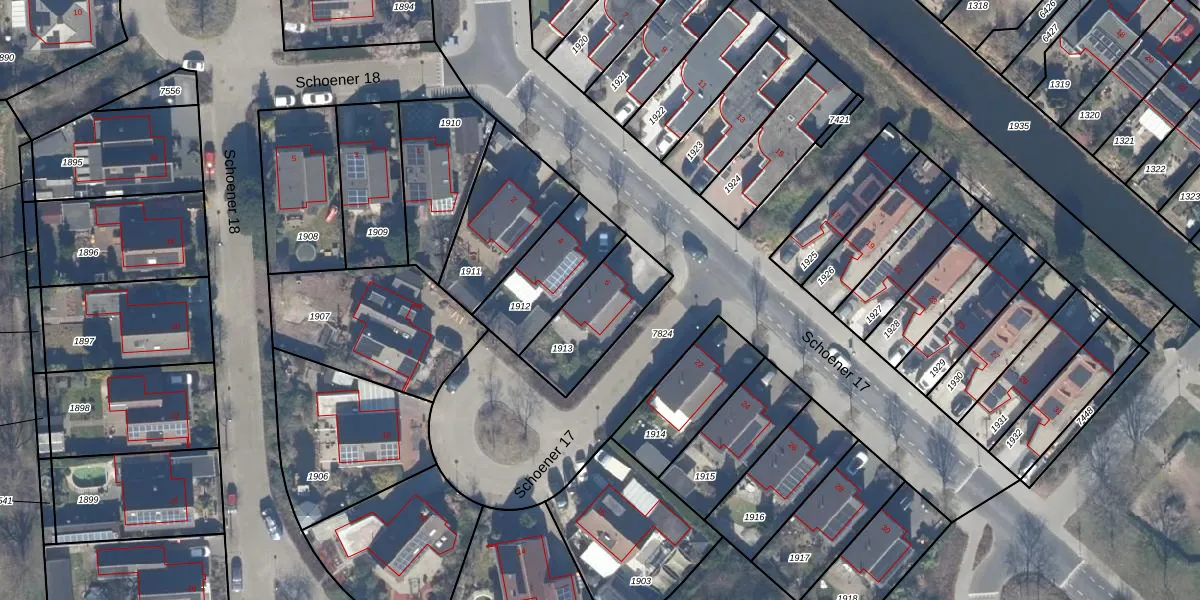 Het perceel waarop Schoener 17 6 staat heeft een oppervlakte van 282 m². Dit is een middelgroot perceel. De perceeloppervlakte wordt geregistreerd door het Kadaster. Gedetailleerde informatie over de maten van dit perceel kunt u vinden in het rapport Kadastrale kaart met maatvoering van Schoener 17 6.