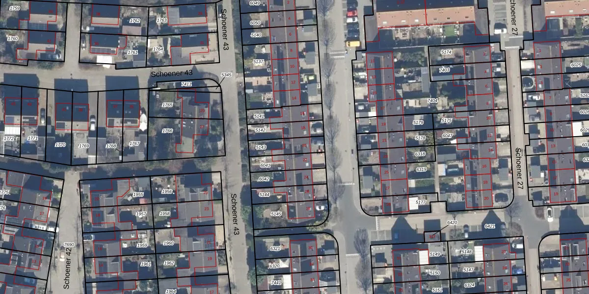 Het perceel waarop Schoener 26 20 staat heeft een oppervlakte van 141 m². Dit is een middelgroot perceel. De perceeloppervlakte wordt geregistreerd door het Kadaster. Gedetailleerde informatie over de maten van dit perceel kunt u vinden in het rapport Kadastrale kaart met maatvoering van Schoener 26 20.
