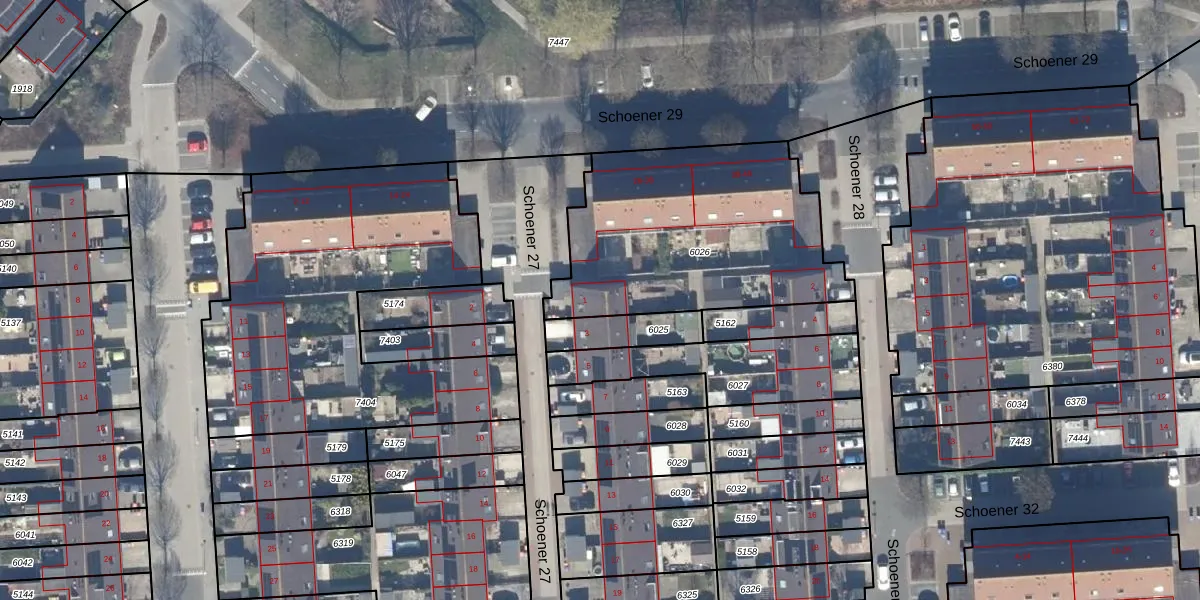 Schoener 27 1 is gelegen op kadastraal perceel LLS00O6026. Deze kadastrale aanduiding is uniek en wordt gebruikt door het Kadaster om eigendomsrechten en andere zakelijke rechten vast te leggen. Het perceel maakt onderdeel uit van de kadastrale gemeente Lelystad.