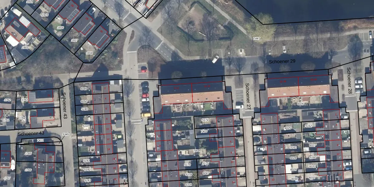 Het perceel waarop Schoener 29 12 staat heeft een oppervlakte van 1675 m². Dit is een zeer groot perceel. De perceeloppervlakte wordt geregistreerd door het Kadaster. Gedetailleerde informatie over de maten van dit perceel kunt u vinden in het rapport Kadastrale kaart met maatvoering van Schoener 29 12.