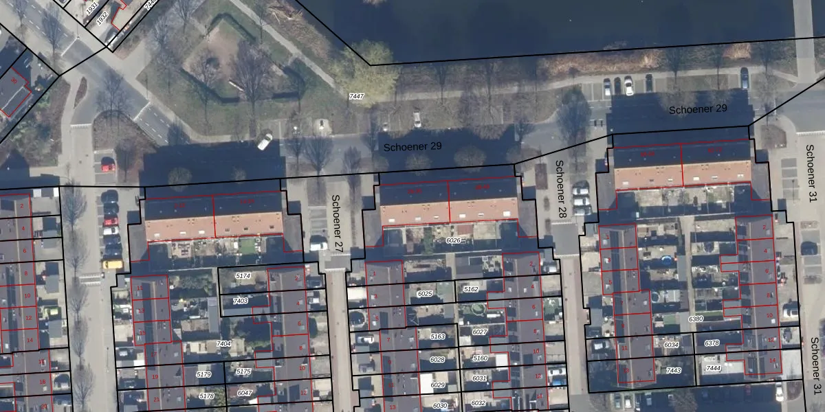 Het perceel waarop Schoener 29 28 staat heeft een oppervlakte van 1135 m². Dit is een zeer groot perceel. De perceeloppervlakte wordt geregistreerd door het Kadaster. Gedetailleerde informatie over de maten van dit perceel kunt u vinden in het rapport Kadastrale kaart met maatvoering van Schoener 29 28.