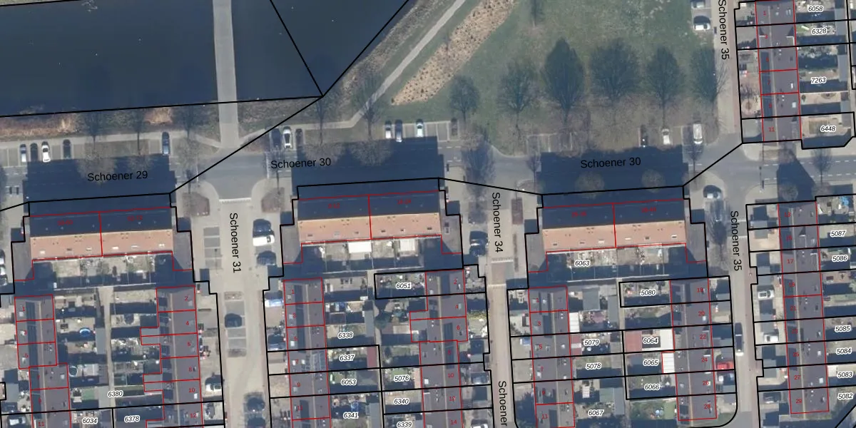 Schoener 30 18 is gelegen op kadastraal perceel LLS00O6338. Deze kadastrale aanduiding is uniek en wordt gebruikt door het Kadaster om eigendomsrechten en andere zakelijke rechten vast te leggen. Het perceel maakt onderdeel uit van de kadastrale gemeente Lelystad.