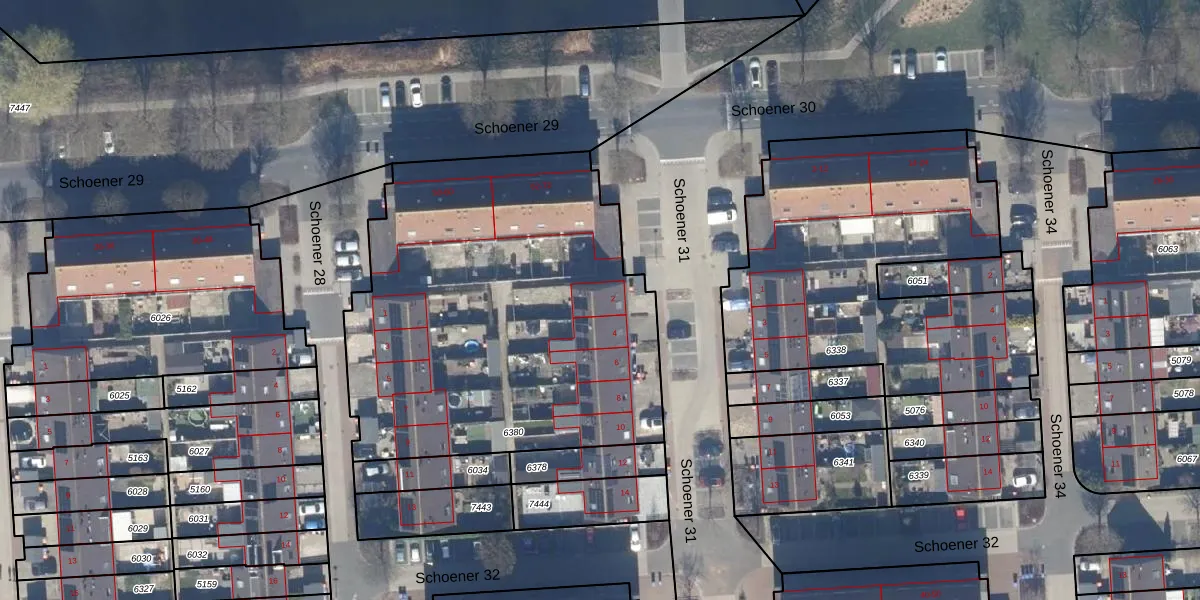 Schoener 31 2 is gelegen op kadastraal perceel LLS00O6380. Deze kadastrale aanduiding is uniek en wordt gebruikt door het Kadaster om eigendomsrechten en andere zakelijke rechten vast te leggen. Het perceel maakt onderdeel uit van de kadastrale gemeente Lelystad.
