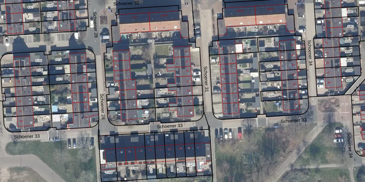 Gebruik de zoekbalk of klik op een perceel voor informatie over de adressen binnen dit perceel.