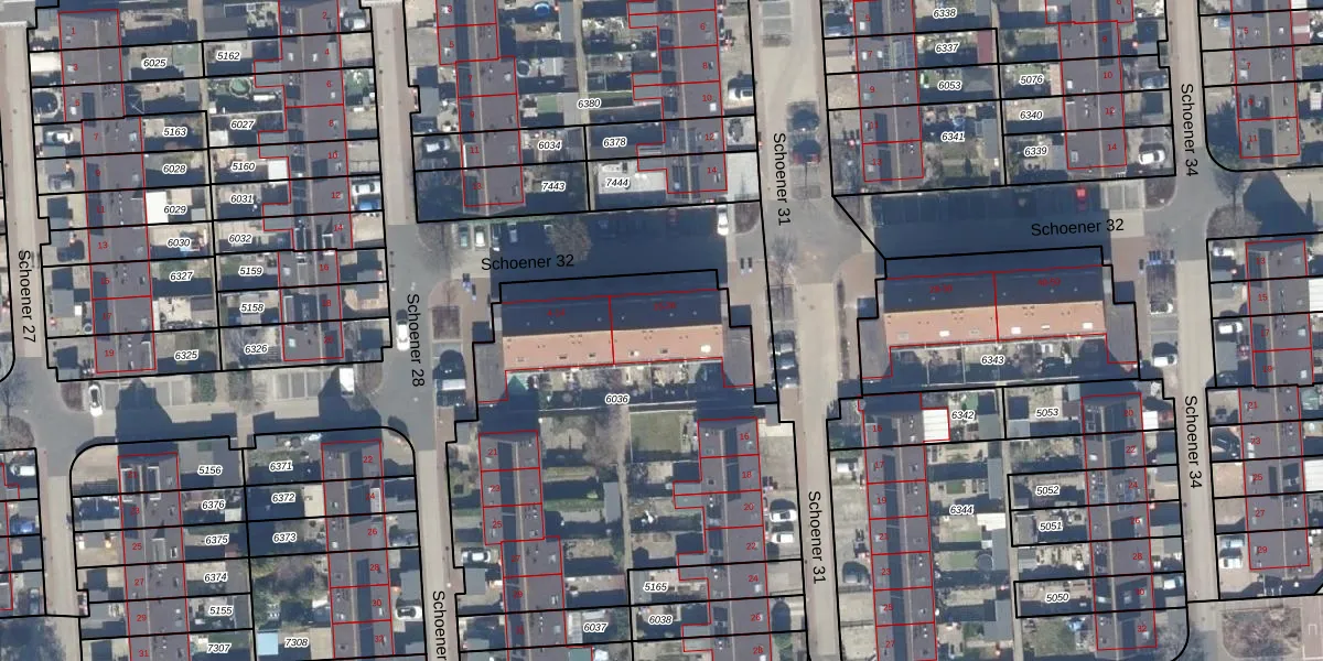 Schoener 32 24 is gelegen op kadastraal perceel LLS00O6036. Deze kadastrale aanduiding is uniek en wordt gebruikt door het Kadaster om eigendomsrechten en andere zakelijke rechten vast te leggen. Het perceel maakt onderdeel uit van de kadastrale gemeente Lelystad.