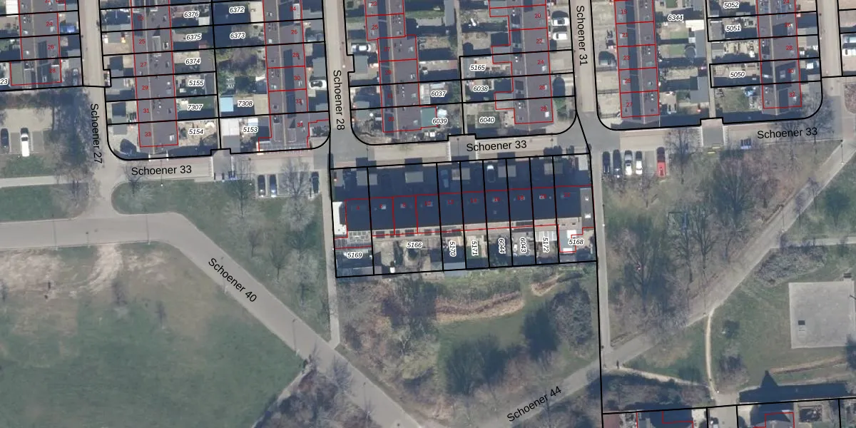 Schoener 33 10 is gelegen op kadastraal perceel LLS00O5166. Deze kadastrale aanduiding is uniek en wordt gebruikt door het Kadaster om eigendomsrechten en andere zakelijke rechten vast te leggen. Het perceel maakt onderdeel uit van de kadastrale gemeente Lelystad.