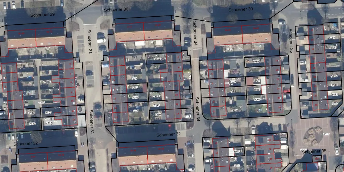 Schoener 34 8 is gelegen op kadastraal perceel LLS00O6338. Deze kadastrale aanduiding is uniek en wordt gebruikt door het Kadaster om eigendomsrechten en andere zakelijke rechten vast te leggen. Het perceel maakt onderdeel uit van de kadastrale gemeente Lelystad.
