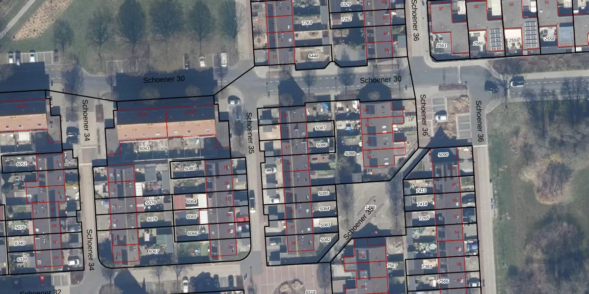 Schoener 35 17 is gelegen op kadastraal perceel LLS00O5086. Deze kadastrale aanduiding is uniek en wordt gebruikt door het Kadaster om eigendomsrechten en andere zakelijke rechten vast te leggen. Het perceel maakt onderdeel uit van de kadastrale gemeente Lelystad.