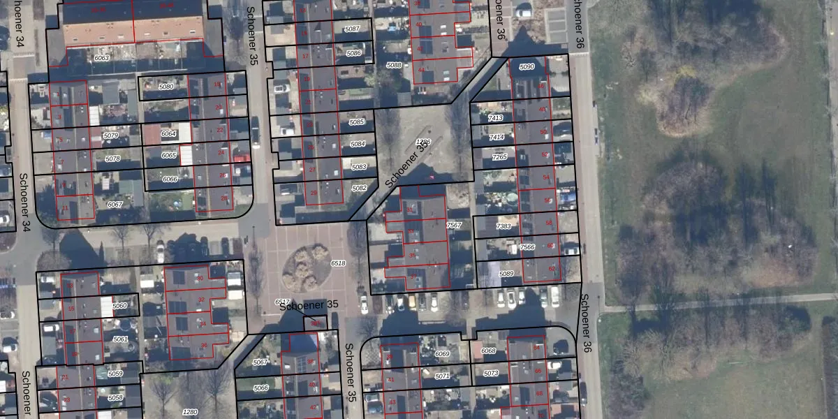 Het perceel waarop Schoener 35 31 staat heeft een oppervlakte van 897 m². Dit is een groot perceel. De perceeloppervlakte wordt geregistreerd door het Kadaster. Gedetailleerde informatie over de maten van dit perceel kunt u vinden in het rapport Kadastrale kaart met maatvoering van Schoener 35 31.