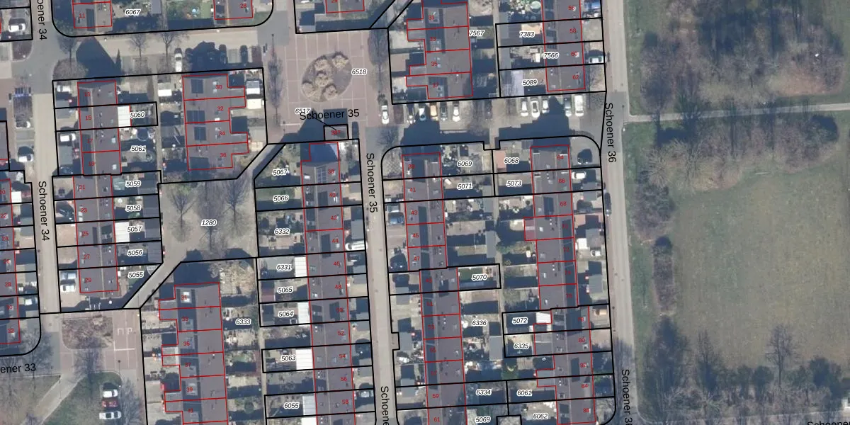 Het perceel waarop Schoener 35 43 staat heeft een oppervlakte van 1811 m². Dit is een zeer groot perceel. De perceeloppervlakte wordt geregistreerd door het Kadaster. Gedetailleerde informatie over de maten van dit perceel kunt u vinden in het rapport Kadastrale kaart met maatvoering van Schoener 35 43.