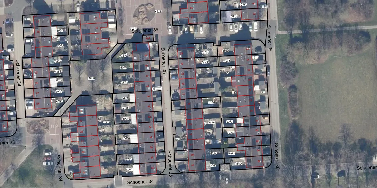 Het perceel waarop Schoener 35 47 staat heeft een oppervlakte van 1811 m². Dit is een zeer groot perceel. De perceeloppervlakte wordt geregistreerd door het Kadaster. Gedetailleerde informatie over de maten van dit perceel kunt u vinden in het rapport Kadastrale kaart met maatvoering van Schoener 35 47.