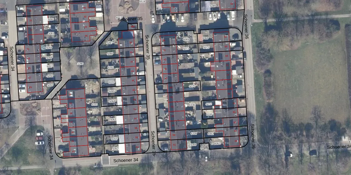 Schoener 35 49 is gelegen op kadastraal perceel LLS00O5070. Deze kadastrale aanduiding is uniek en wordt gebruikt door het Kadaster om eigendomsrechten en andere zakelijke rechten vast te leggen. Het perceel maakt onderdeel uit van de kadastrale gemeente Lelystad.