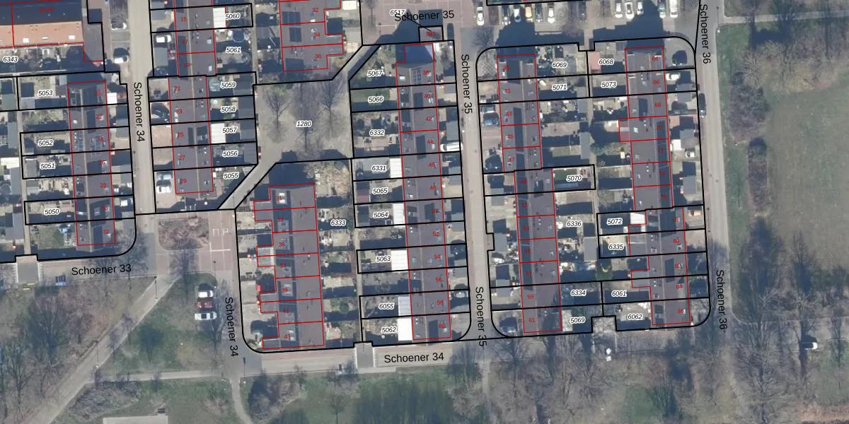 Gebruik de zoekbalk of klik op een perceel voor informatie over de adressen binnen dit perceel.